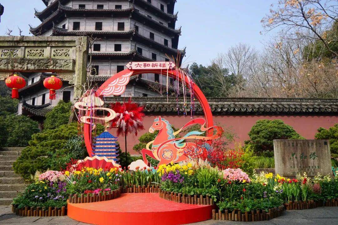 本年春节,西湖景区点缀一新,各从干道细心布设了马年从题小品,或灵动飞跃,或憨态可掬,原有花坛花境也悉数升级,一步一景皆成画。六和塔景区内“顿时有福”小品收成超高人气,融合福字、骏马元素以及烟花制型,搭配红果冬青、洋水仙、郁金喷鼻等年宵花,传送福运临门的夸姣祝愿。