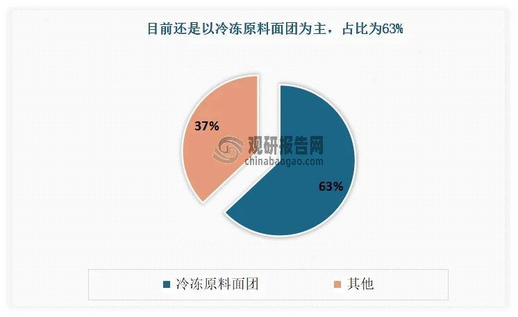 冷冻烘焙食物按照加工深度和终端使用需求,可分为冷冻原料面团(根本型)、预成型冷冻面团(尺度型)、预发酵冷冻面团(进阶型)、成品冷冻烘焙(即食型)。当前正在冷冻烘焙食物市场中,仍是以冷冻原料面团为从,占比为63%。